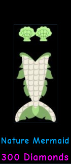 Mermaid and merman tails are accessories that used to be available in the Royale High shop. They could be purchased with Diamonds. The only difference between mermaid and merman tails is that the merman tails don't have a seashell bra on the chest. Mermaid and merman tails were removed on November 6, 2019 due to the release of the new shop, but can still be used if already bought. You cannot trade these items.